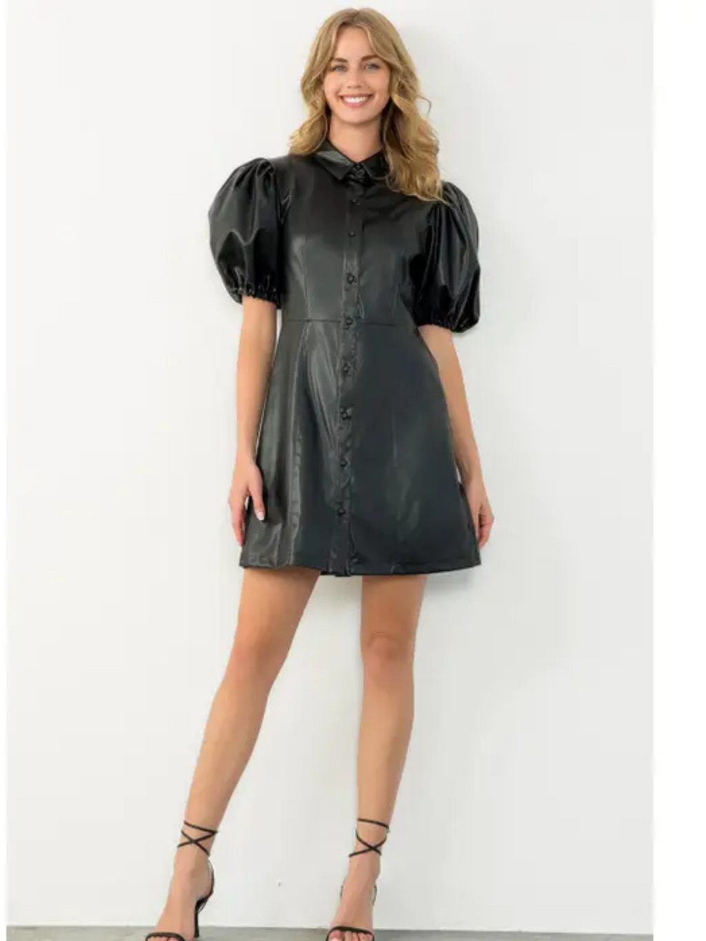 Valentina Puff Sleeve V Neck Button Up Suede Dress
